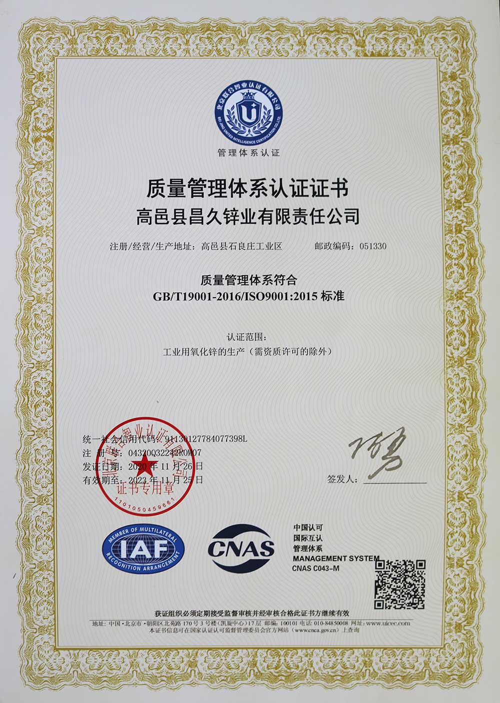 Chemical industry grade zinc oxide